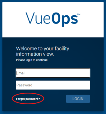 - Enter the email used to log into VueOps SiteLine to send a link to reset password.
